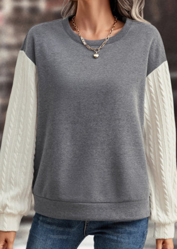 Grey Crewneck with Cream Textured Sleeves