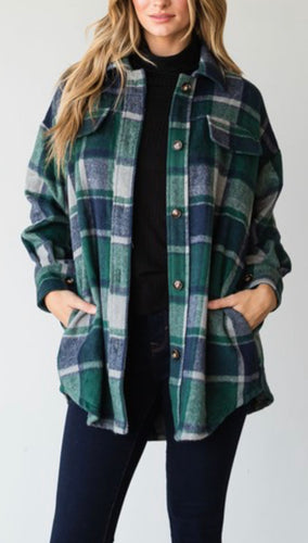 Green/Navy Plaid Shacket