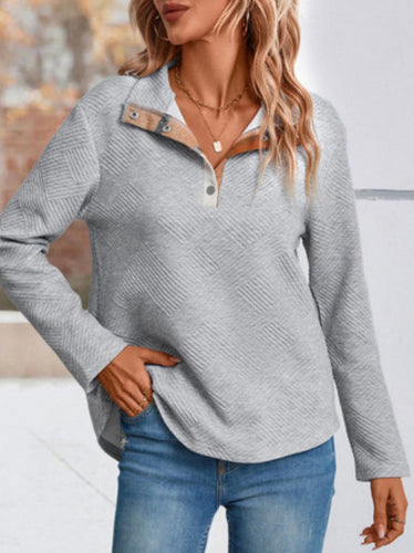 Grey Textured Plaid Patchwork 1/2 Snap