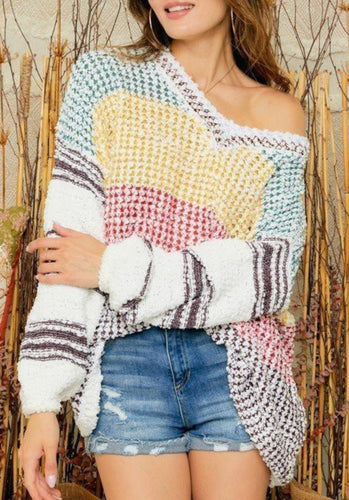 Multi Colored Wide Stripe Waffle Sweater