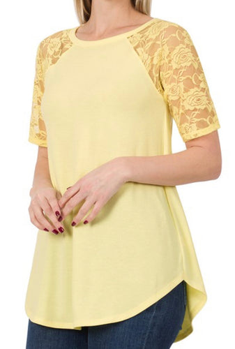 Yellow Lace Sleeve Top