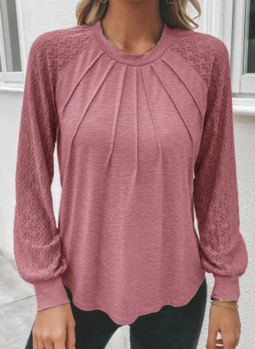 Rose Pleated Lace Sleeve Top