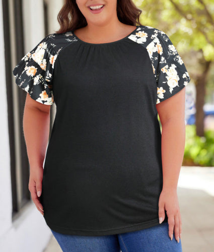 Plus Black Floral Sleeve Top